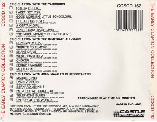 | 101 | THE EARLY CLAPTON | 51 | THE EARLY CLAPTON COLLECTION | 101.jpg | 101R.jpg | CASTLE COMMUNICATION | 1987 | originale |