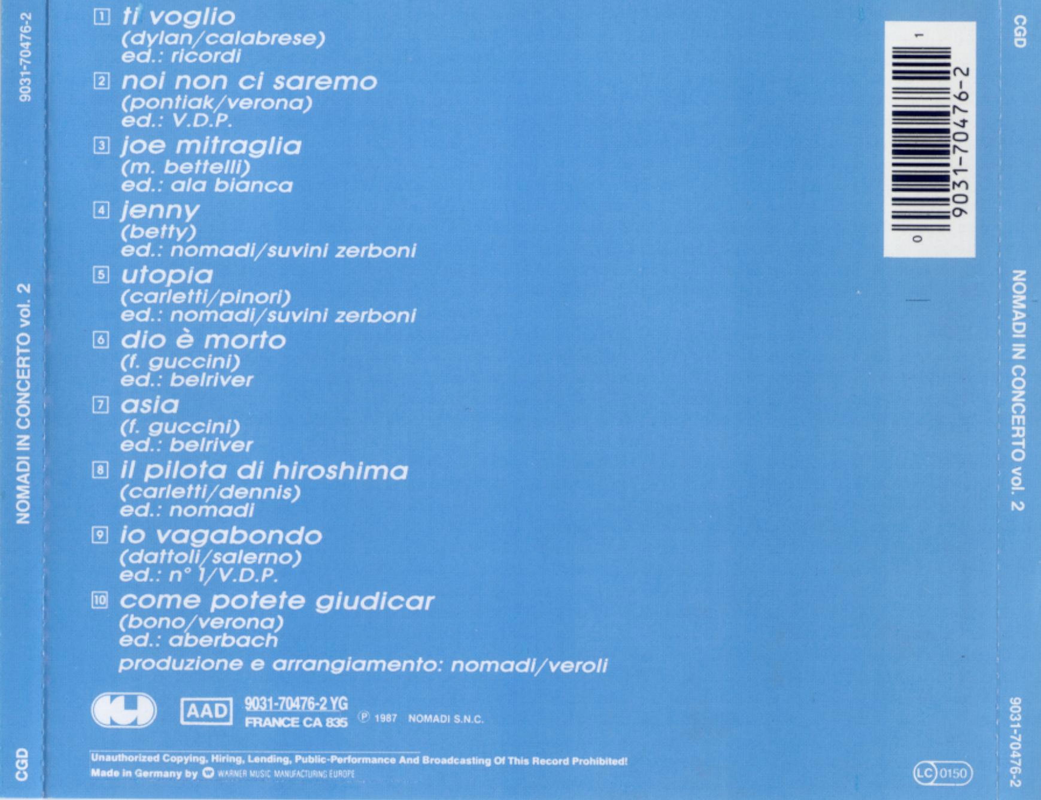 | 627 | VASCO ROSSI | 314 | ROCK.BALLADS.LIVE | 627.jpg | 627R.jpg | EMI | 2006 | |