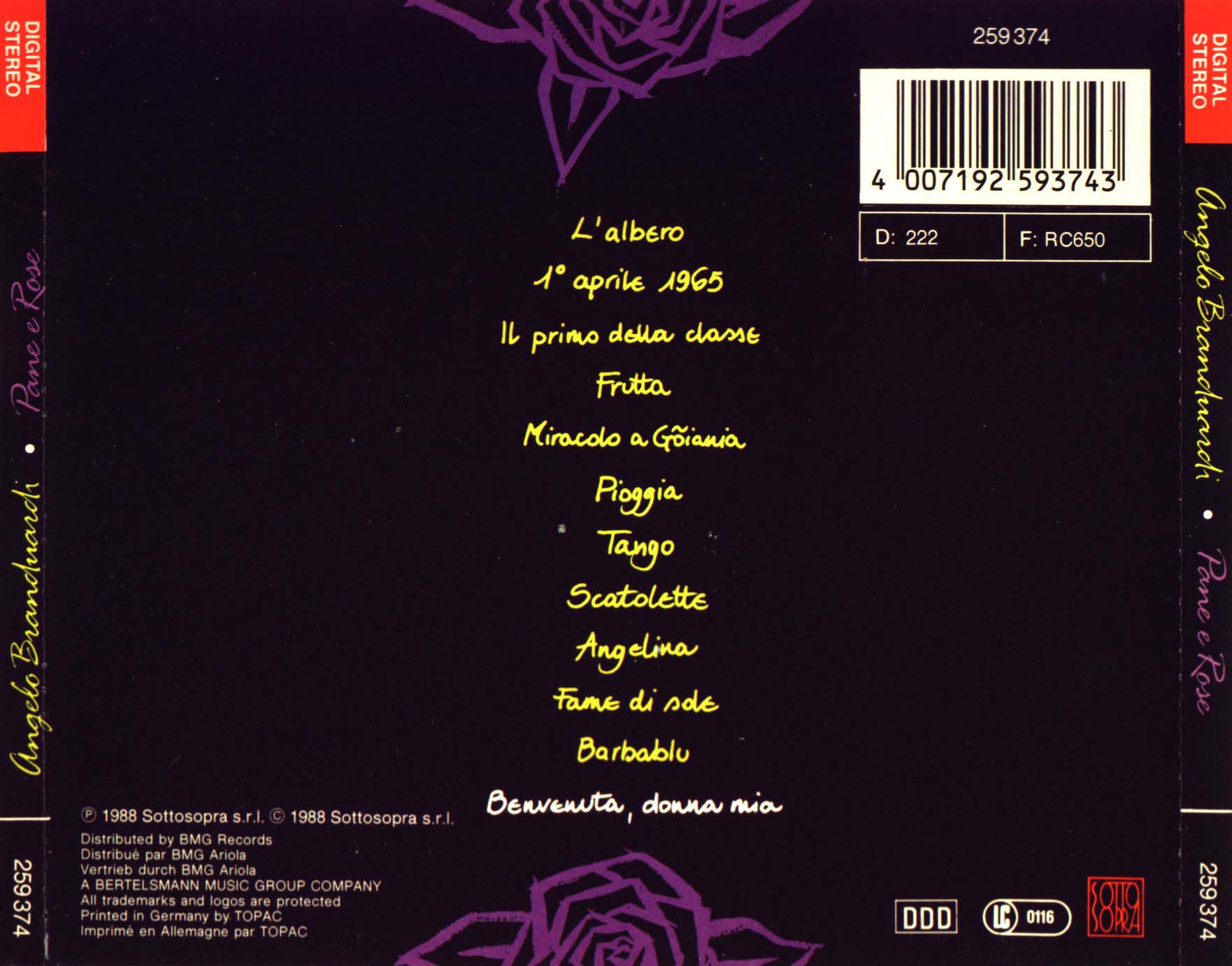 | 193 | ANGELO BRANDUARDI | 97 | PANE E ROSE | 193.jpg | 193R.jpg | POLYDOR | 1988 | originale |