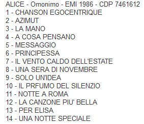 | 221 | ALICE | 111 | MELODIE PASSEGGERE | 221.jpg | 221R.JPG | EMI | 1988 | originale |