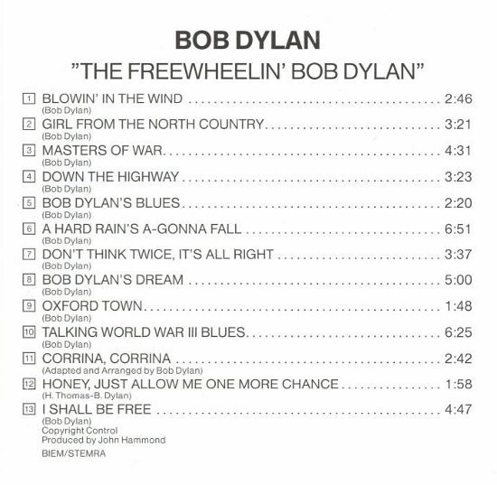 | 212 | BOB DYLAN | 106 | THE FREEWHEELIN' BOB DYLAN | 212.jpg | 212R.jpg | CBS | 1989 | originale |
