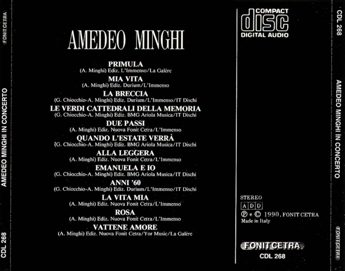 | 226 | AMEDEO MINGHI | 113 | AMEDEO MINGHI IN CONCERTO | 226.jpg | 226R.jpg | FONIT CETRA | 1990 | originale |