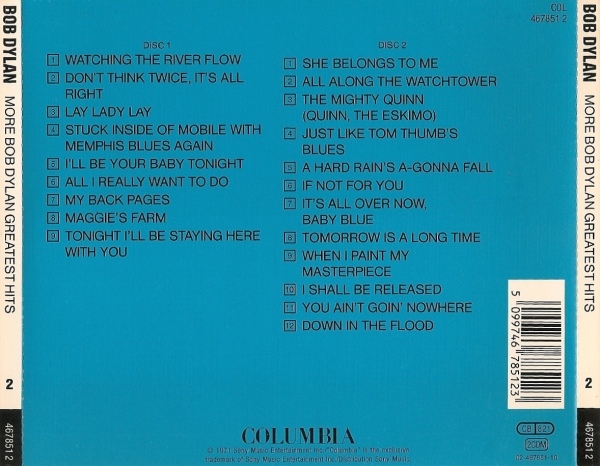 | 274 | BOB DYLAN | 137 | MORE BOB DYLAN GREATEST HITS | 274.jpg | 274R.jpg | COLUMBIA | 1997 | originale |