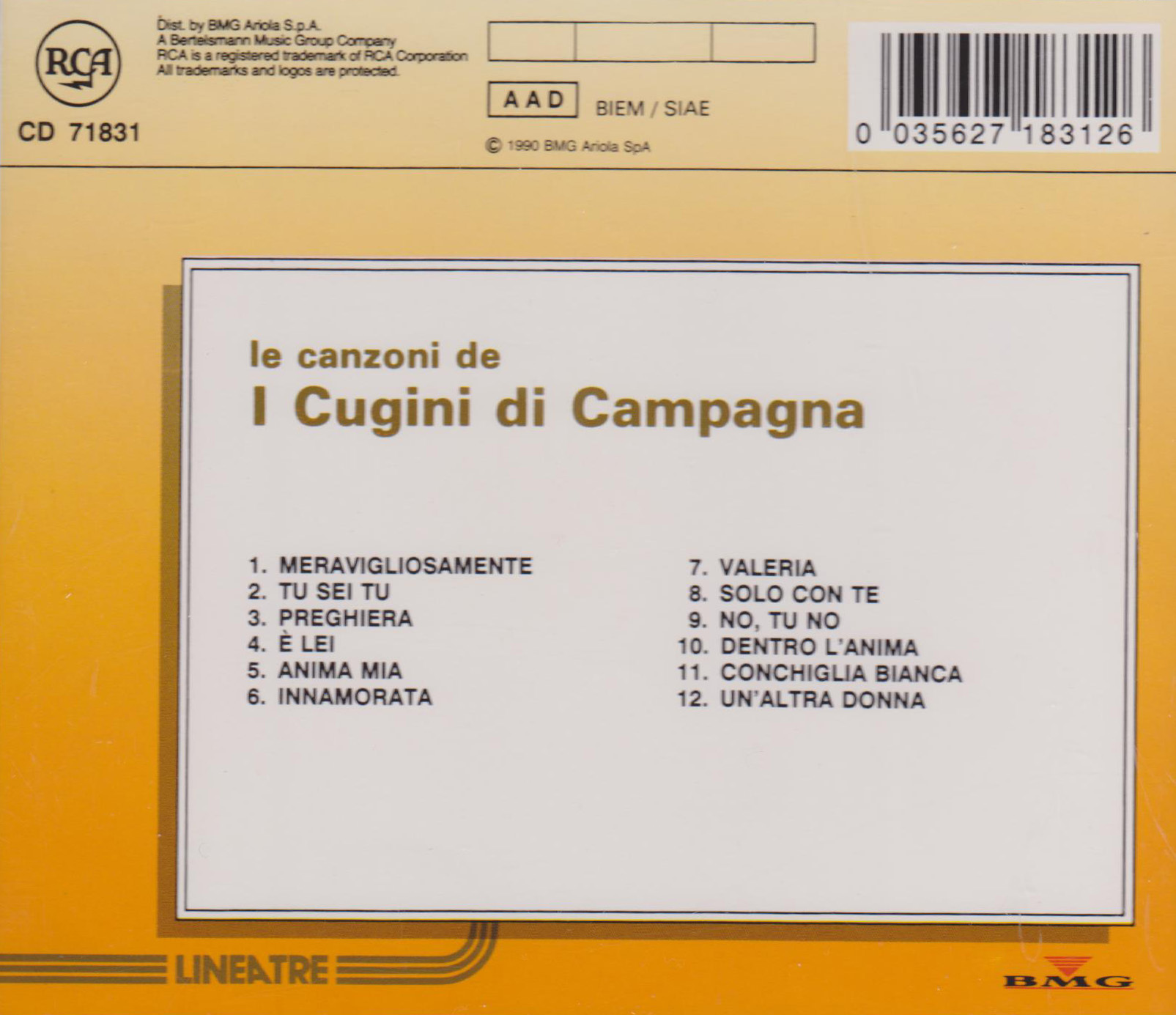 | 289 | SERGIO ENDRIGO | 145 | CANZONI PER TE | 289.jpg | 289R.jpg | RCA | 1991 | originale |