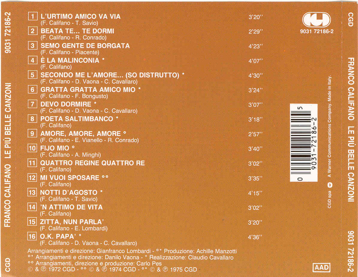 | 623 | VINICIO CAPOSSELA | 312 | CAMERA A SUD | 623.jpg | 623R.jpg | CGD | 1994 | |