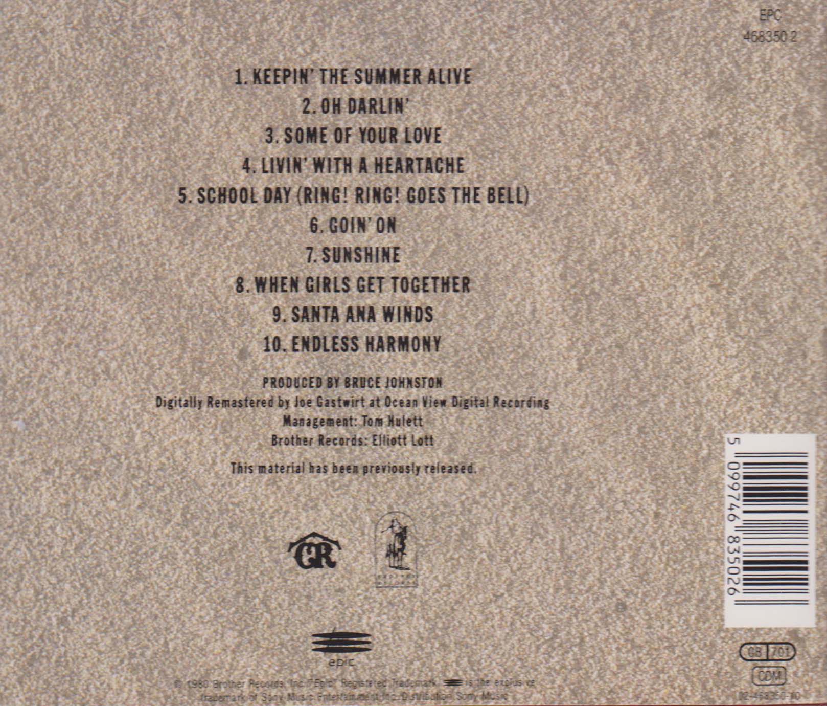 | 295 | THE BEACH BOYS | 148 | KEEPIN' THE SUMMER ALIVE | 295.JPG | 295R.jpg | BROTHERS RECORDS | 1991 | originale |