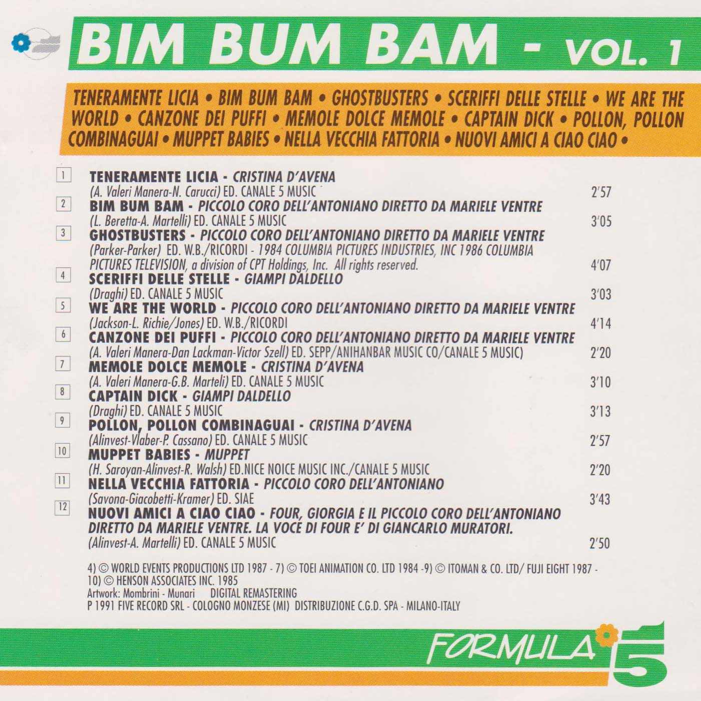 | 313 | BIM BUM BAM - VOL 2 | 157 | 313.jpg | 313R.jpg | FORMULA 5 | 1991 | originale | |
