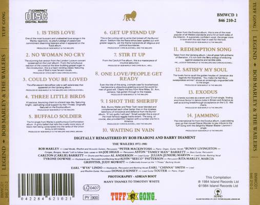| 307 | BOB MARLEY & THE WAILERS | 154 | LEGEND | 307.jpg | 307R.jpg | TUFF GONG | 1984 | originale |