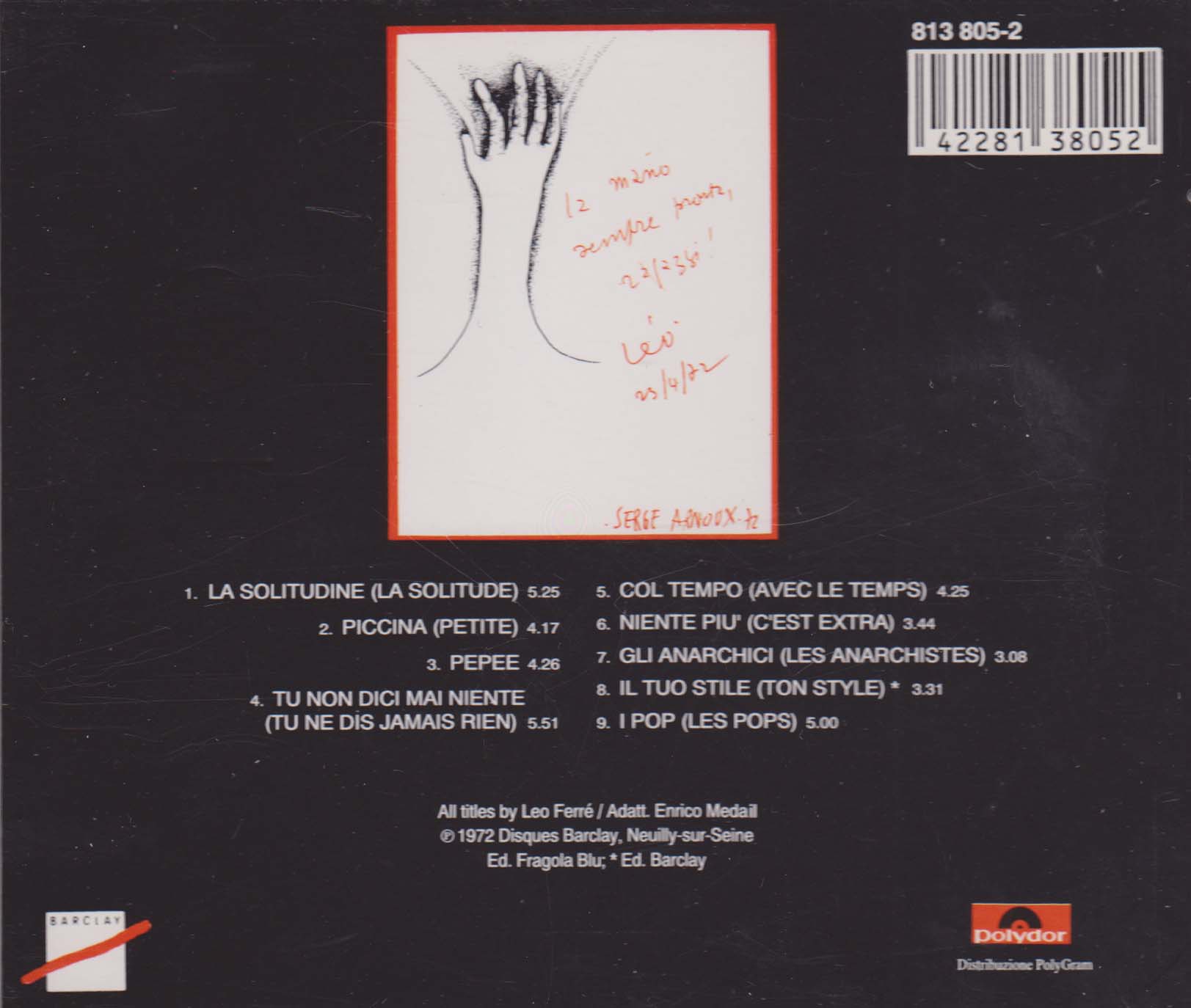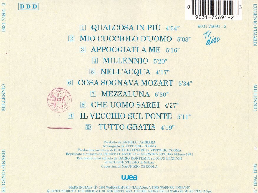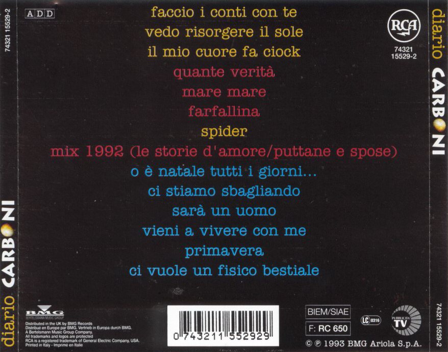 | 579 | BIAGIO ANTONACCI | 290 | LIBERATEMI | 579.jpg | 579R.jpg | UNIVERSAL MUSIC GROUP | 1992 | |