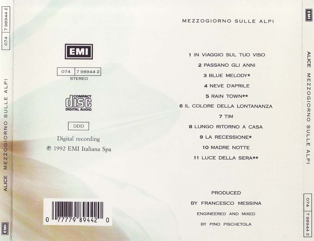 | 356 | ALICE | 178 | MEZZOGIORNO SULLE ALPI | 356.jpg | 356R.jpg | EMI | 1992 | originale |