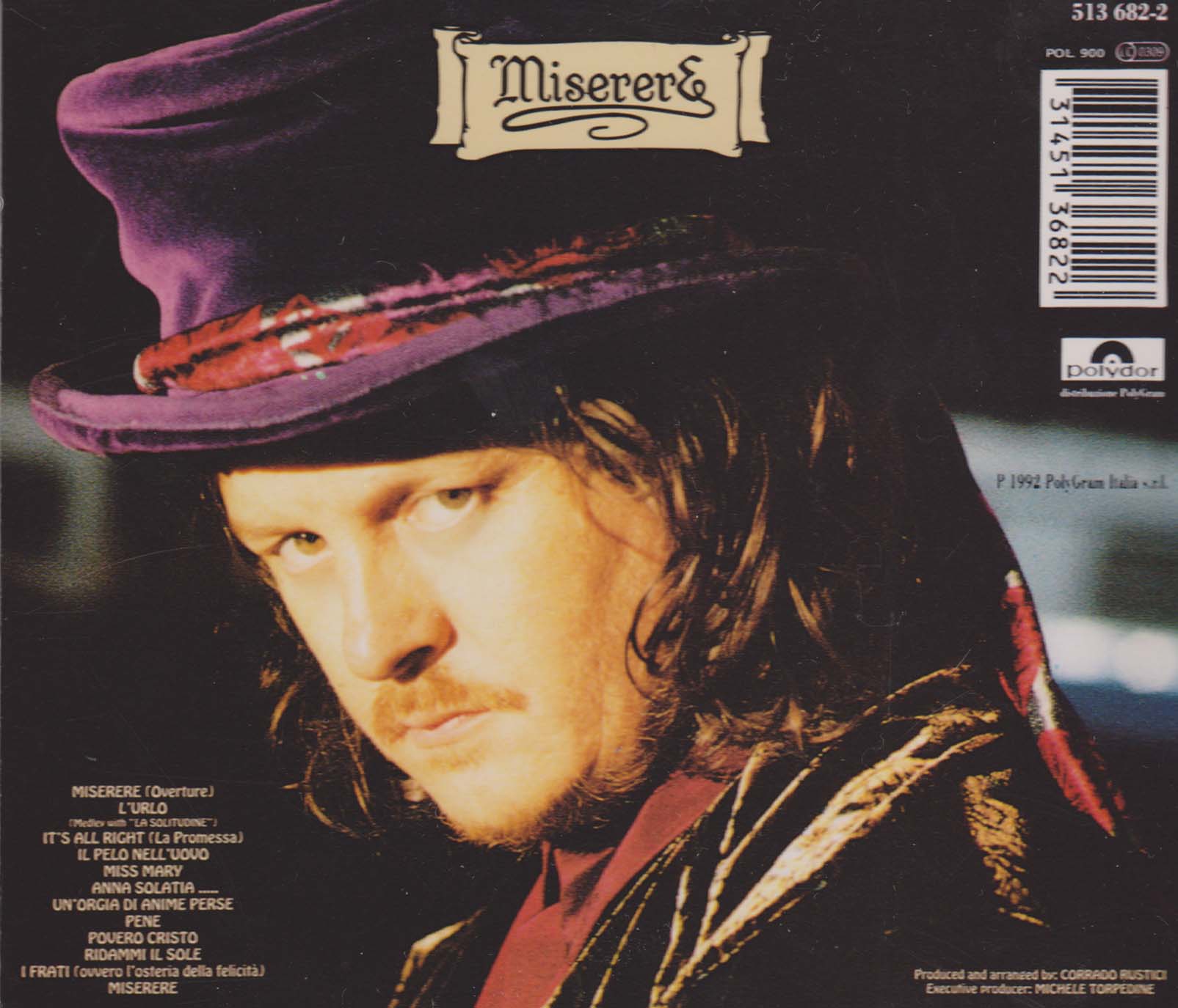 | 363 | ZUCCHERO SUGAR FORNACIARI | 182 | MISERERE | 363.JPG | 363R.jpg | POLYDOR | 1992 | originale |