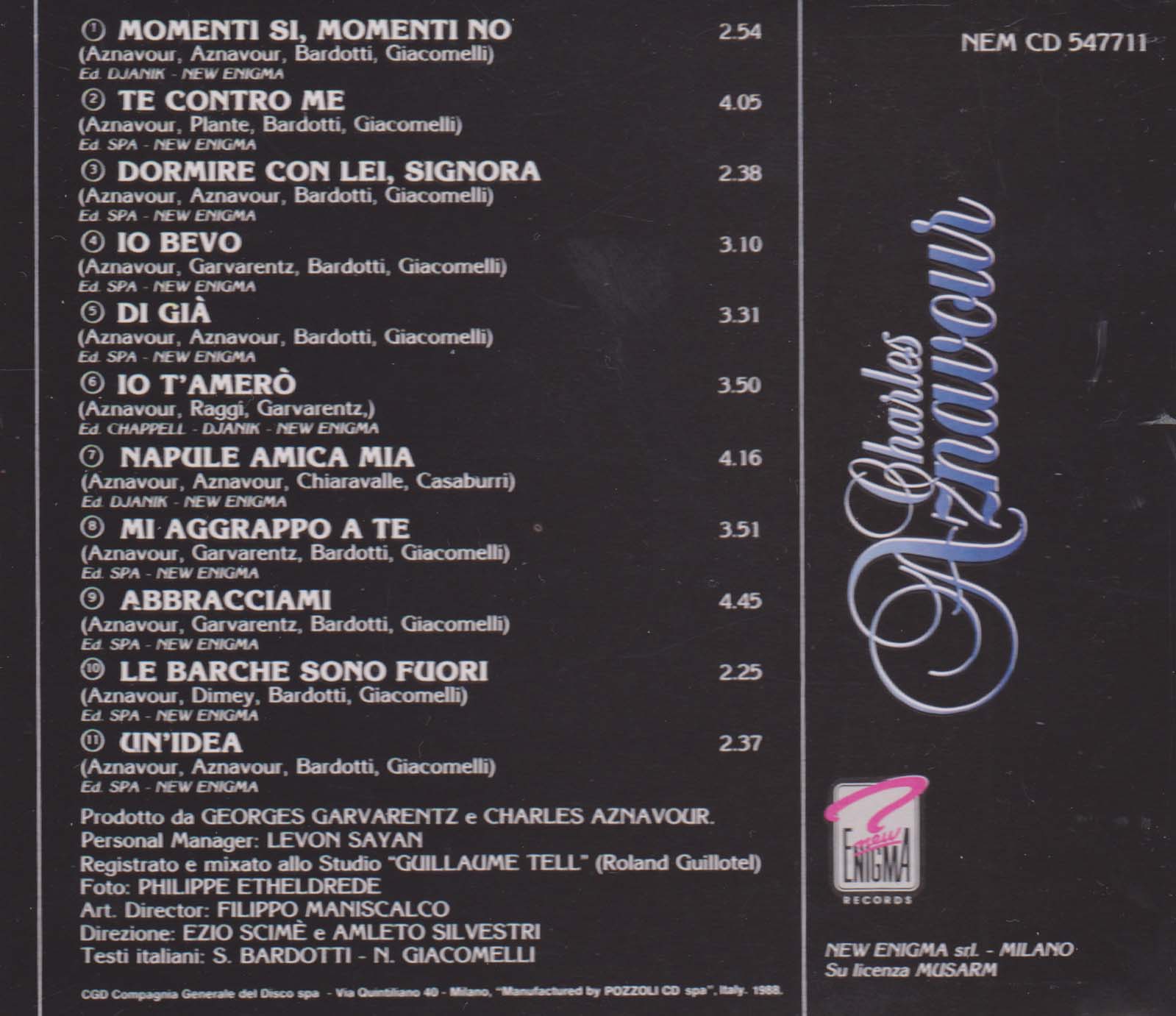 | 365 | CHARLES AZNAVOUR | 183 | MOMENTI SI, MOMENTI NO | 365.jpg | 365R.jpg | ENIGMA | 1988 | originale |
