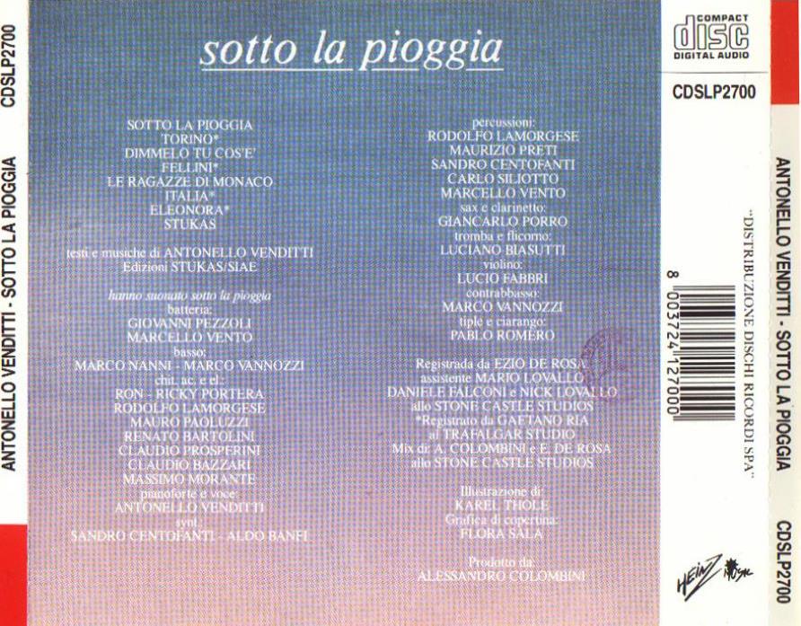 | 397 | ANTONELLO VENDITTI | 199 | SOTTO LA PIOGGIA | 397.jpg | 397R.jpg | HEINZ MUSIC | 1987 | originale |