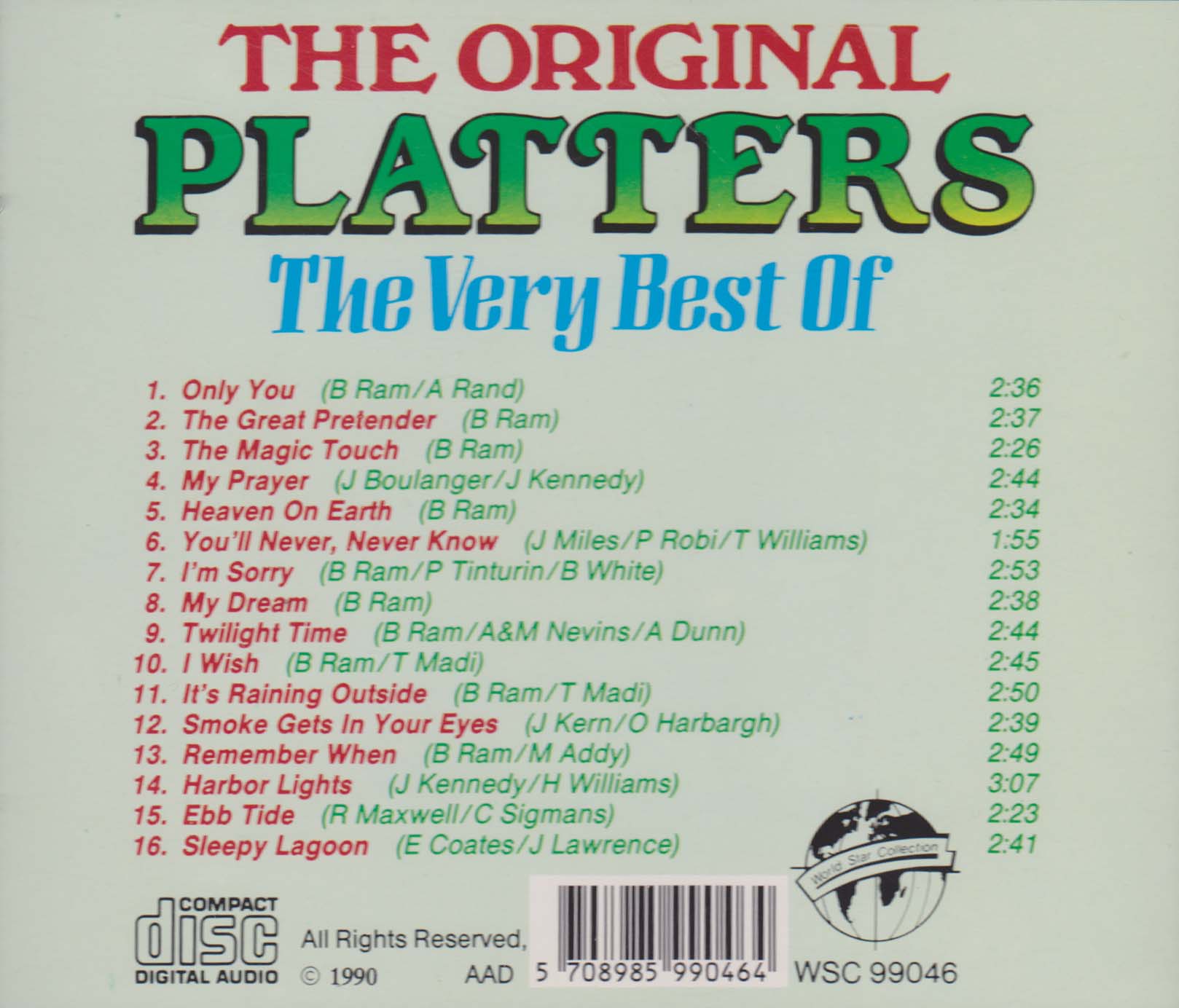 | 403 | THE PLATTERS | 202 | THE VERY BEST OF THE ORIGINAL PLATTERS | 403.jpg | 403R.jpg | WORLD STAR COLLECTION | 1990 | originale |
