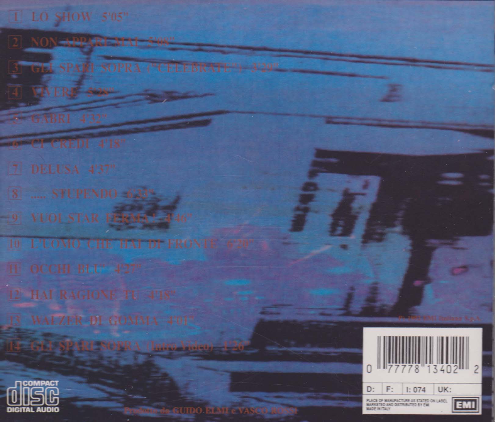 | 407 | VASCO ROSSI | 204 | GLI SPARI SOPRA | 407.jpg | 407R.jpg | EMI | 1993 | originale |