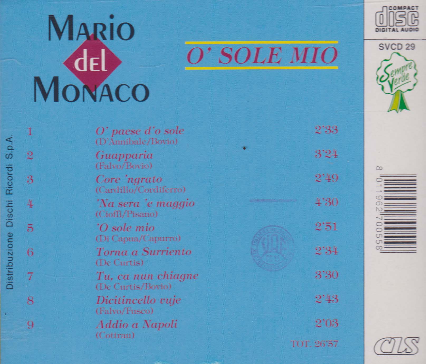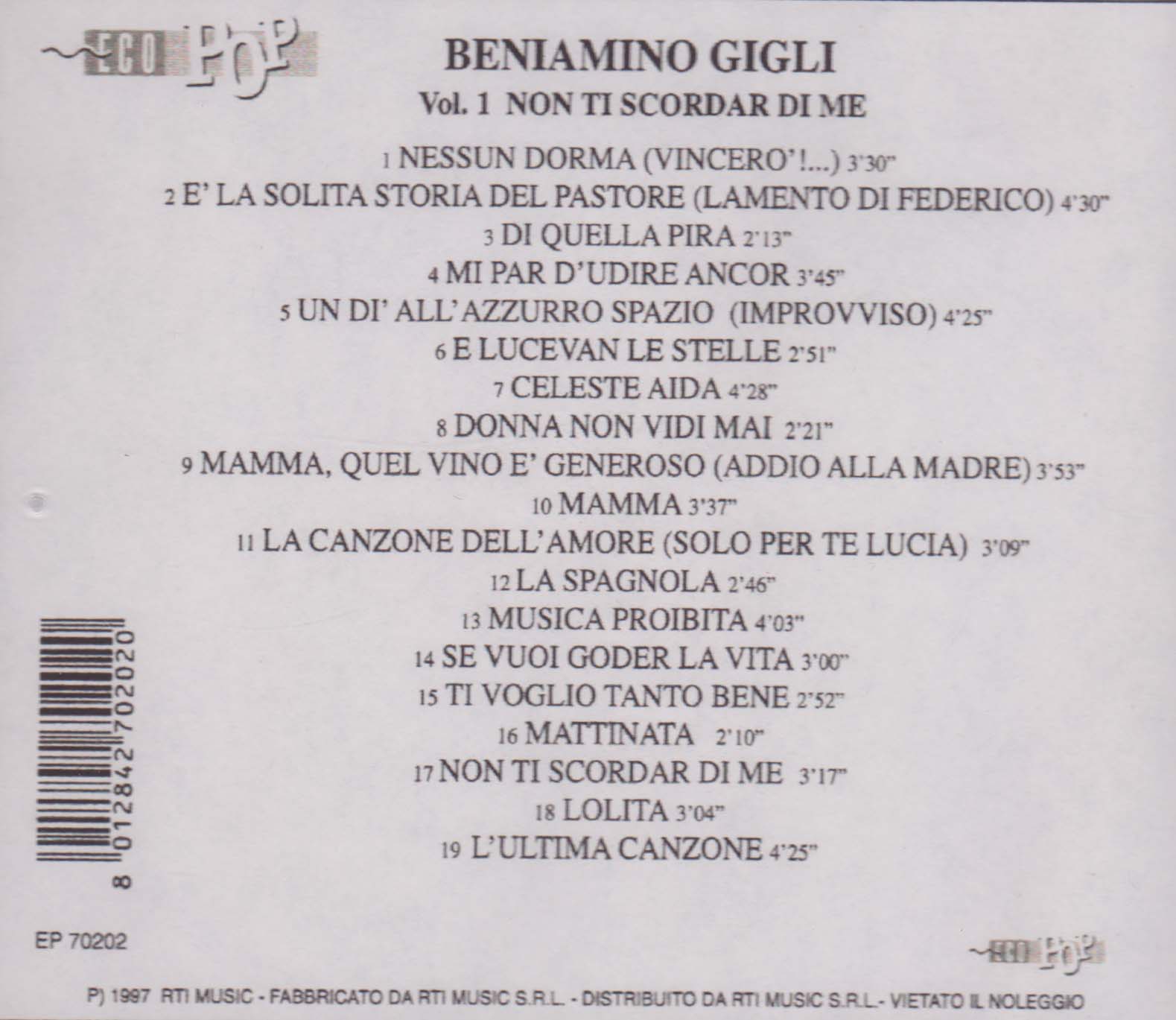 | 601 | BENIAMINO GIGLI | 301 | NONTI SCORDAR DI ME… VOL 1 | 601.JPG | 601R.jpg | ECO POP | 1997 | |