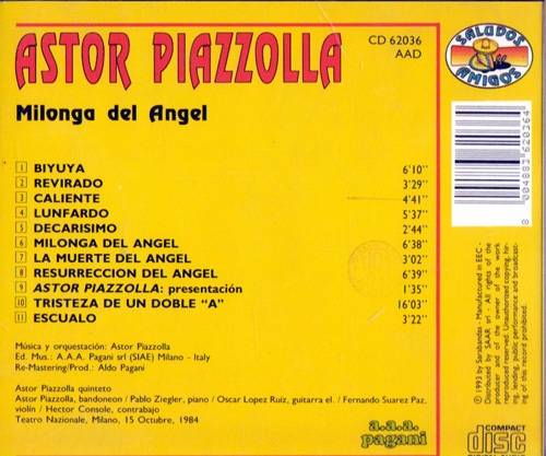 | 433 | ASTOR PIAZZOLLA | 217 | MILONGA DEL ANGEL | 433.jpg | 433R.jpg | SALUDOS AMIGOS | 1993 | originale |