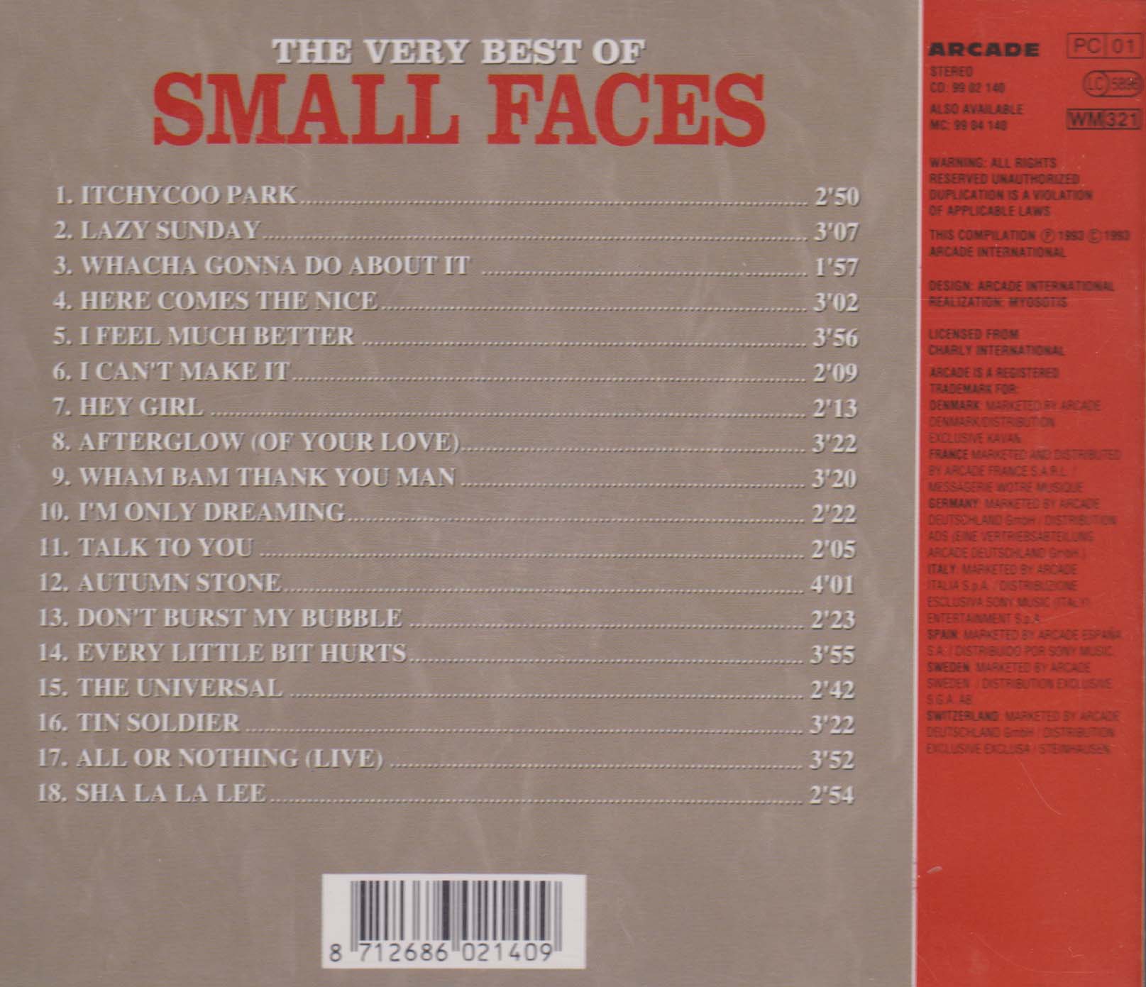 | 442 | SMALL FACES | 221 | THE VERY BEST OF SMALL FACES | 442.jpg | 442R.jpg | ARCADE | 1993 | originale |