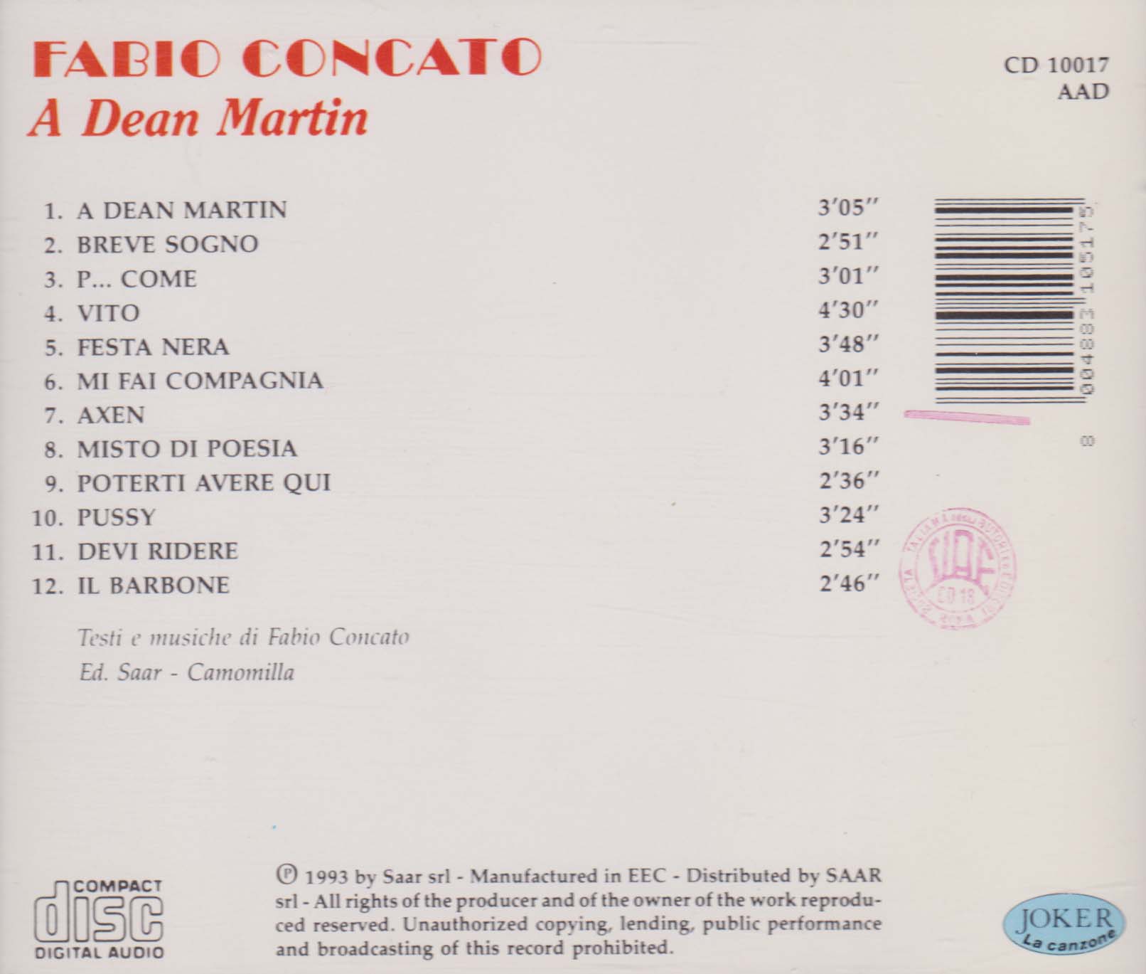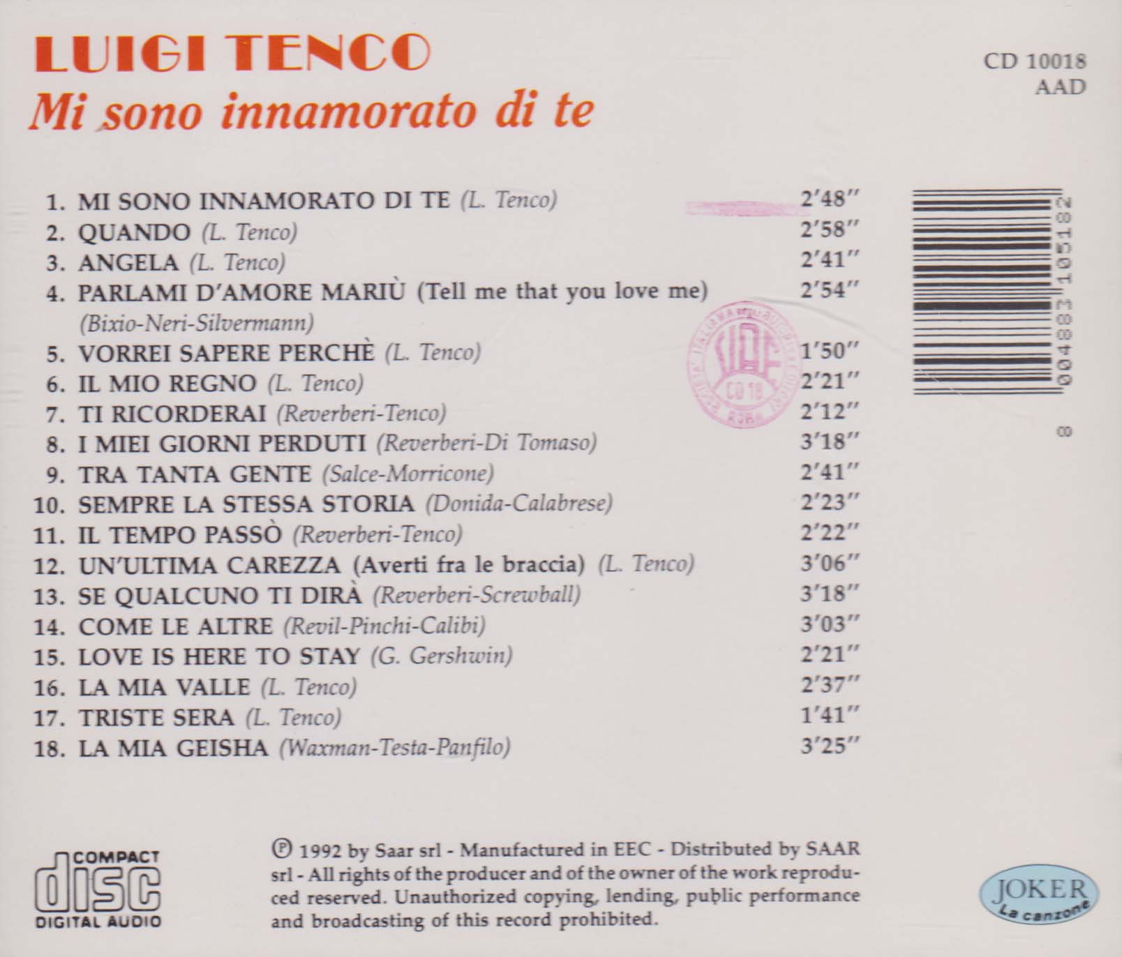 | 414 | ANDREA MINGARDI | 207 | SOGNO | 414.jpg | 414R.jpg | EPIC | 1993 | originale |