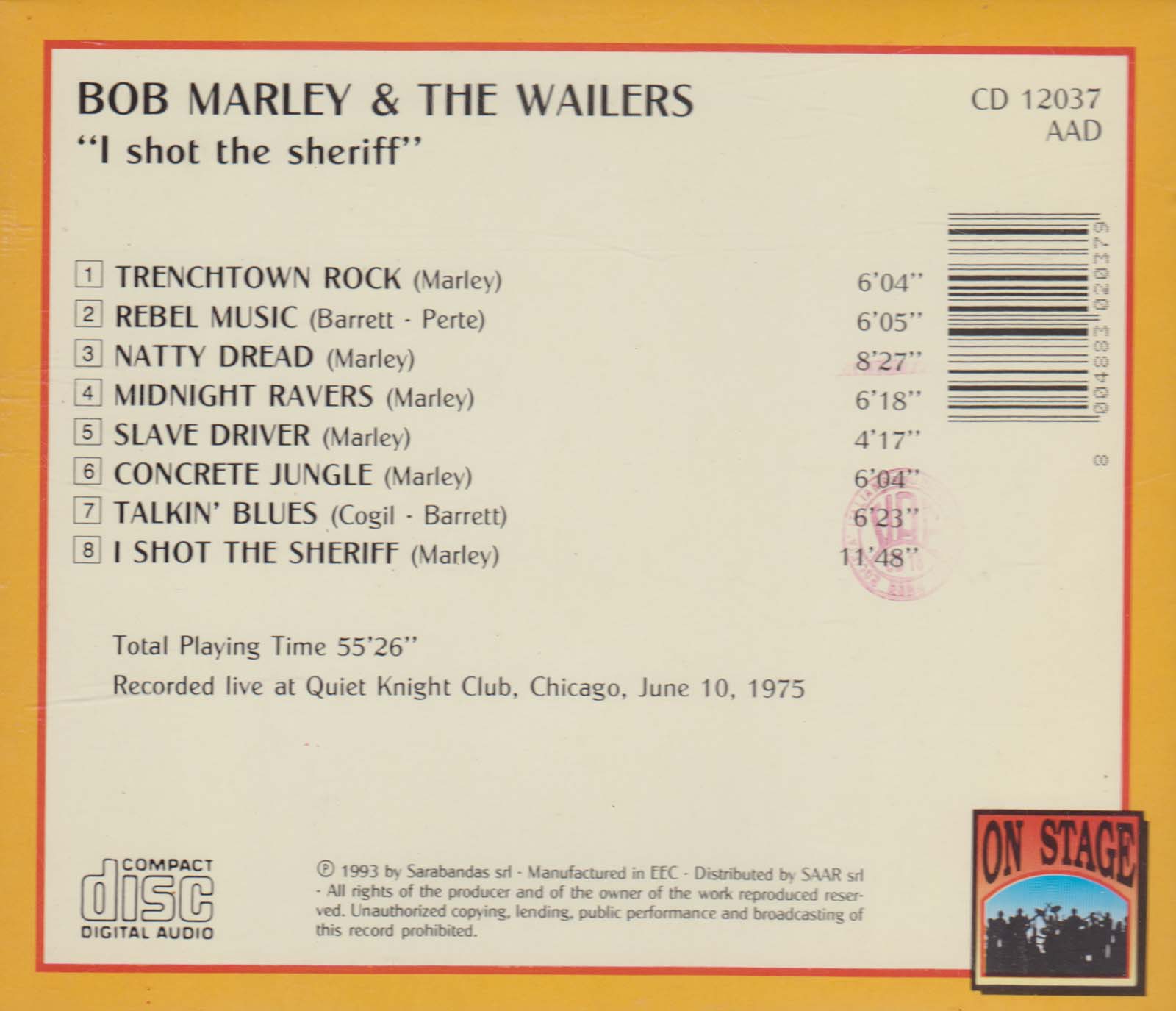 | 444 | BOB MARLEY & THE WAILERS | 222 | I SHOT THE SHERIFF | 444.jpg | 444R.jpg | ON STAGE | 1993 | originale |