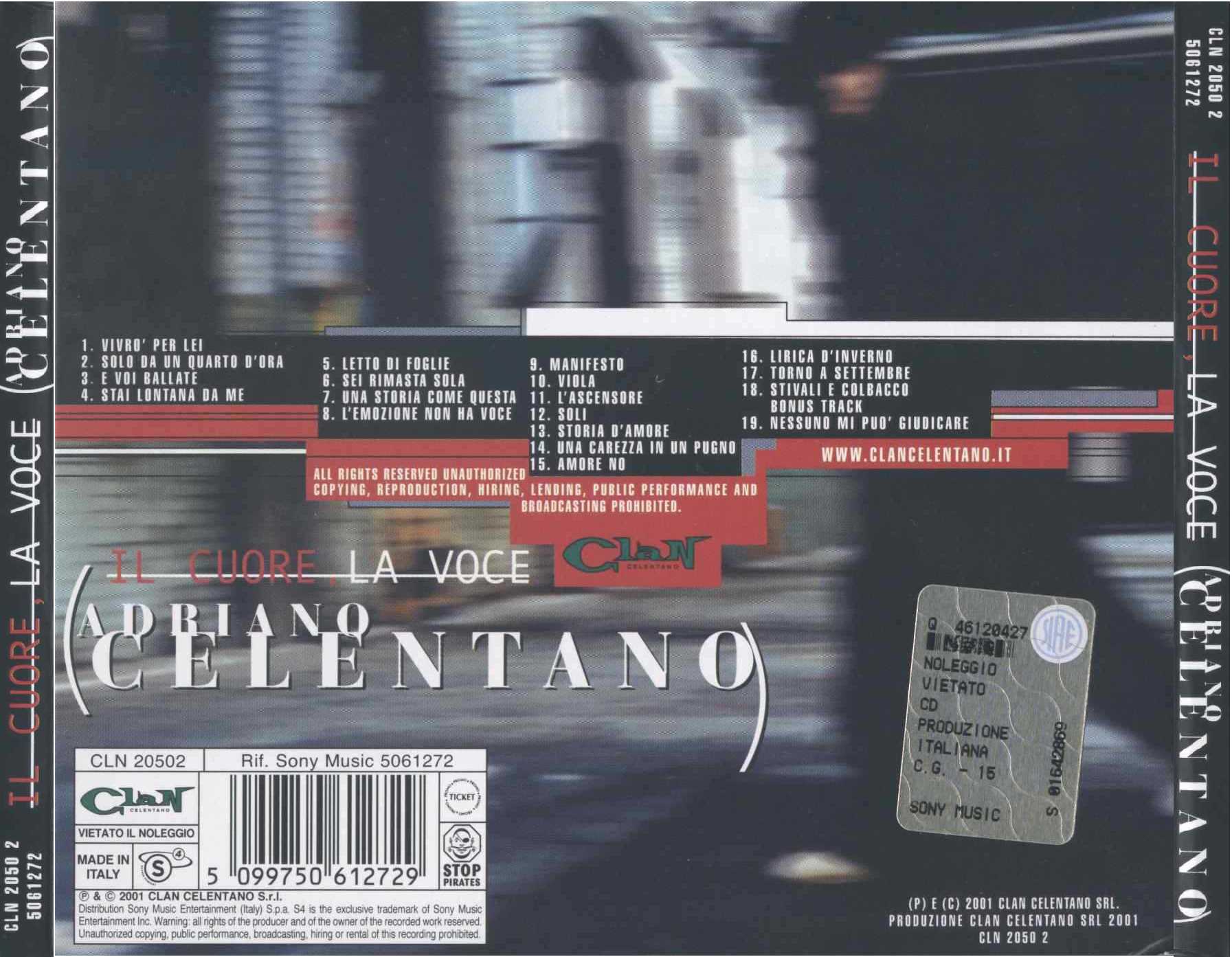 | 509 | ADRIANO CELENTANO | 255 | IL CUORE, LA VOCE | 509.jpg | 509R.jpg | CLAN CELENTANO | 2001 | |