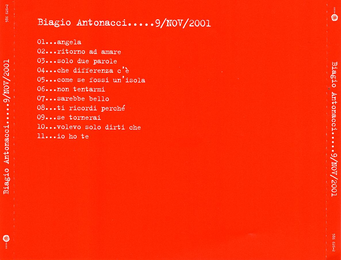 | 520 | BIAGIO ANTONACCI | 260 | BIAGIO ANTONACCI 9/NOV/2001 | 520.jpg | 520R.jpg | IRIS | 2001 | |