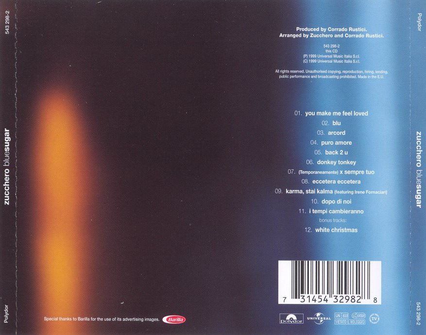 | 538 | ZUCCHERO SUGAR FORNACIARI | 269 | ZUCCHERO BLUESUGART | 538.jpg | 538R.jpg | POLYDOR | 1998 | originale |
