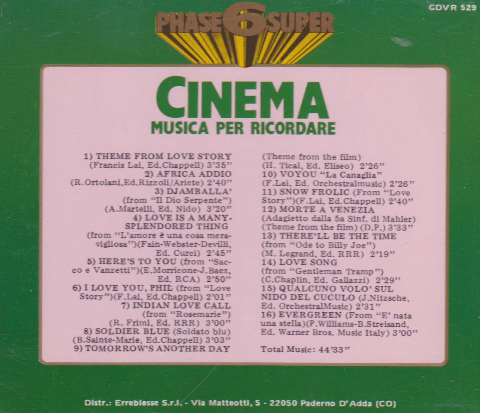 | 549 | CINEMA | 275 | MUSICA PER RICORDARE | 549.jpg | 549R.jpg | PHASE 6 SUPER | 1989 | originale |