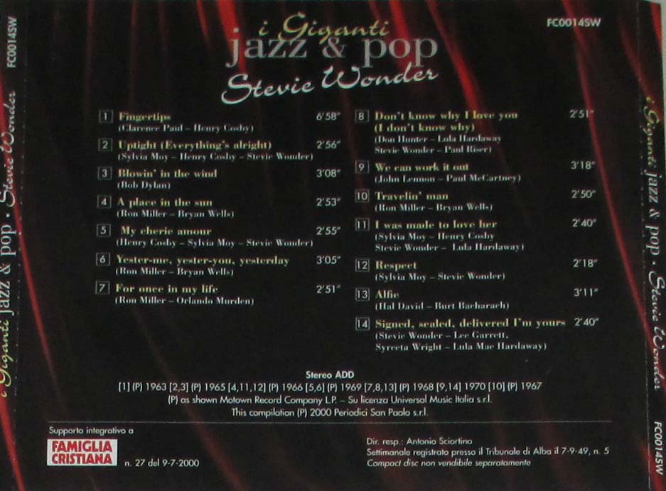| 617 | STEVIE WONDER | 309 | I GIGANTI JAZZ & POP | 617.JPG | 617R.JPG | 2000 | originale | |