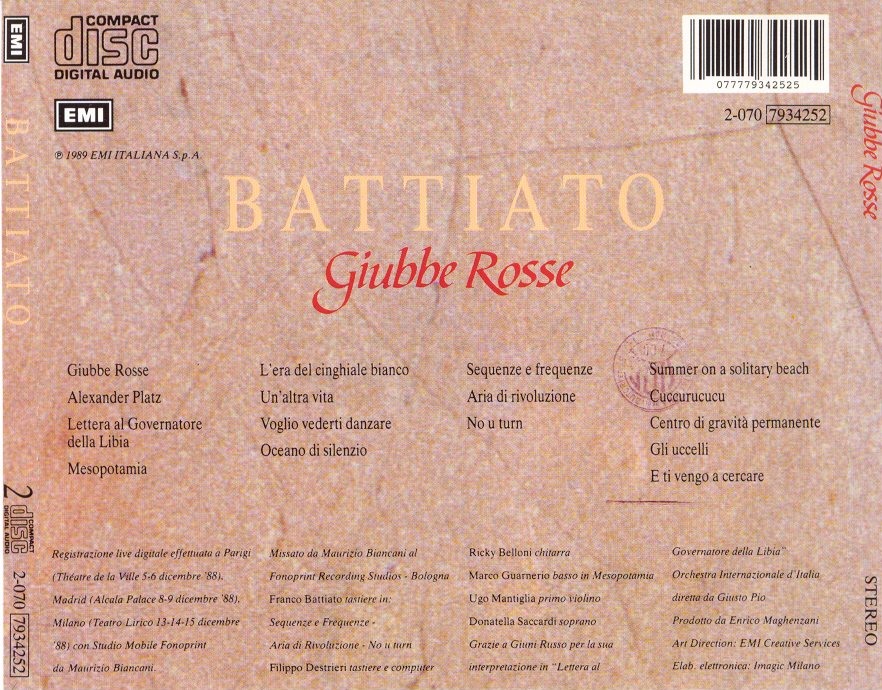 | 61 | BATTIATO | 31 | GIUBBE ROSSE | 61.jpg | 61R.jpg | EMI | 2011 | originale |