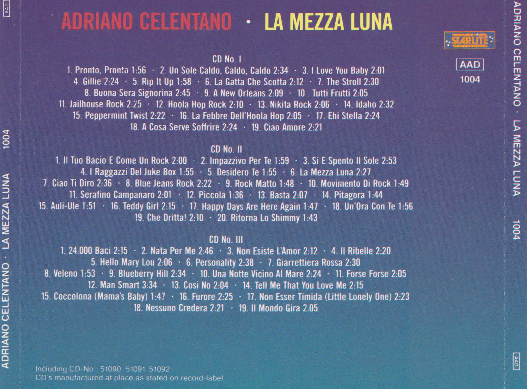 | 77 | ADRIANO CELENTANO | 39 | LA MEZZA LUNA | 77.jpg | 77R.jpg | STARLITE | 1988 | originale |
