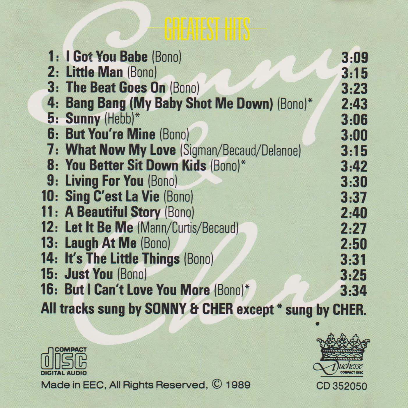 | 82 | SONNY & CHER | 41 | GREATEST HITS | 82.jpg | 82R.jpg | DUCHESSE COMPACT DISC | 1989 | originale |
