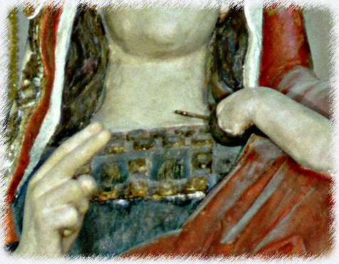 Formella in vetro posta sul petto della Madonna del Monte raffigurante l'Annunciazione